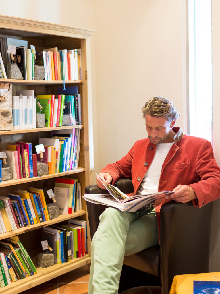 - Hotel-Bibliothek mit ausgewählten Büchern und Magazinen